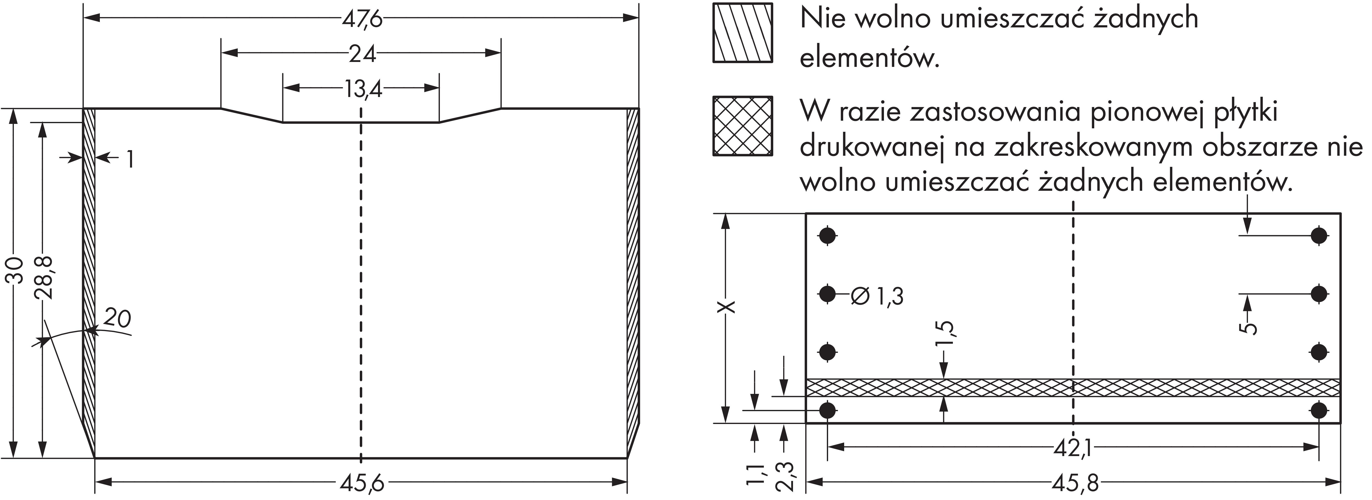 | Z podłączeniem PCB (obwód drukowany): |