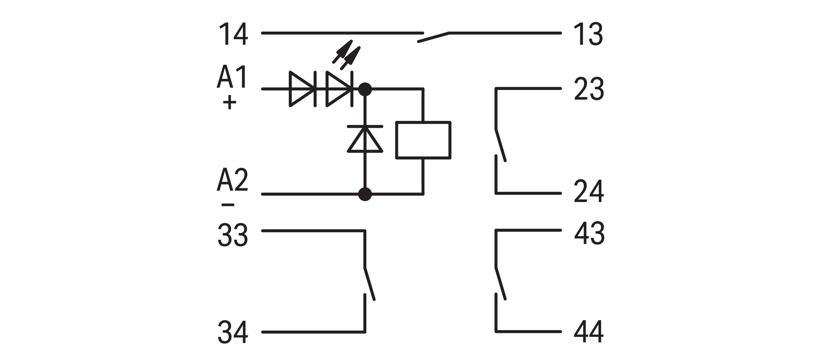przekaźnik; znamionowe napięcie wejściowe 24 V DC; 4 zestyk zwierny; maksymalny prąd długotrwały 5 A; kolejnictwo; sygnalizacja statusu czerwony; szerokość 25 mm; szary