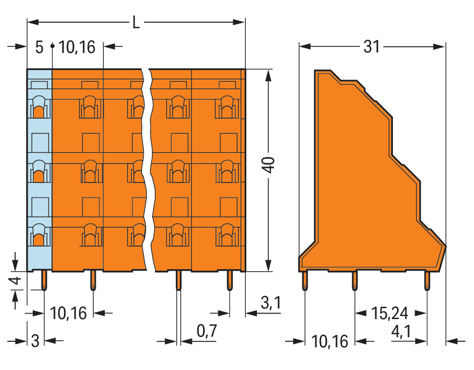 złącze 3-piętrowe do PCB; 2,5 mm²; raster 10,16 mm; 12-bieg.; CAGE CLAMP®; pomarańczowy