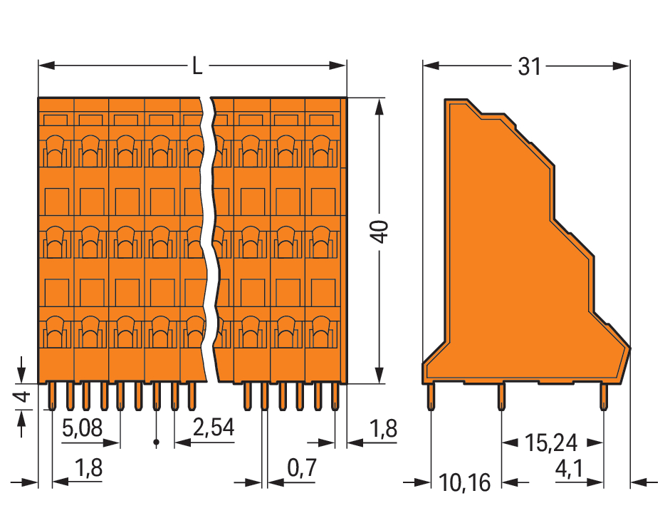 złącze 3-piętrowe do PCB; 2,5 mm²; raster 5,08 mm; 48-bieg.; CAGE CLAMP®; pomarańczowy