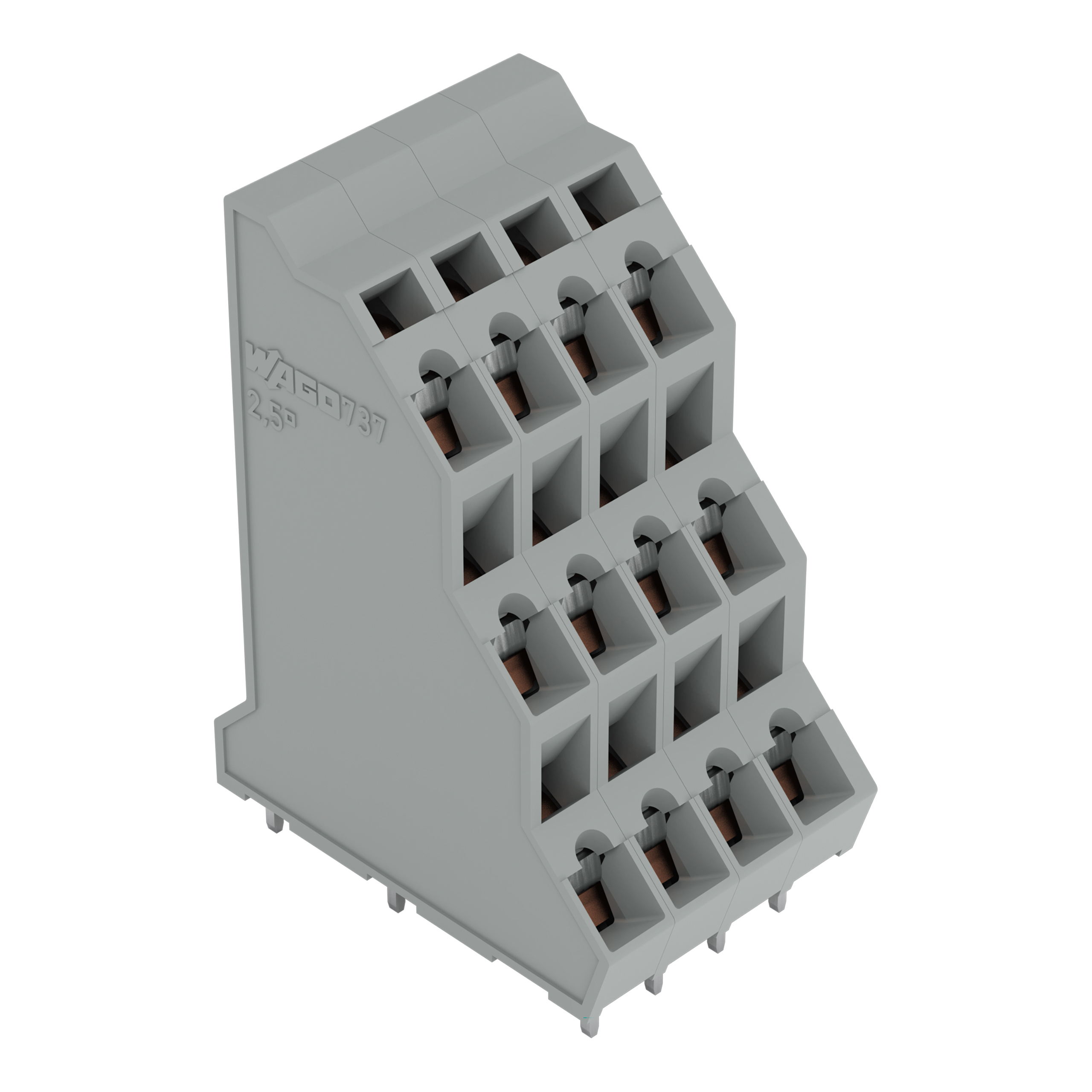3-piętrowa złączka do płytek drukowanych 2,5 mm² RM 5 mm 6-bieg, szara 737-102