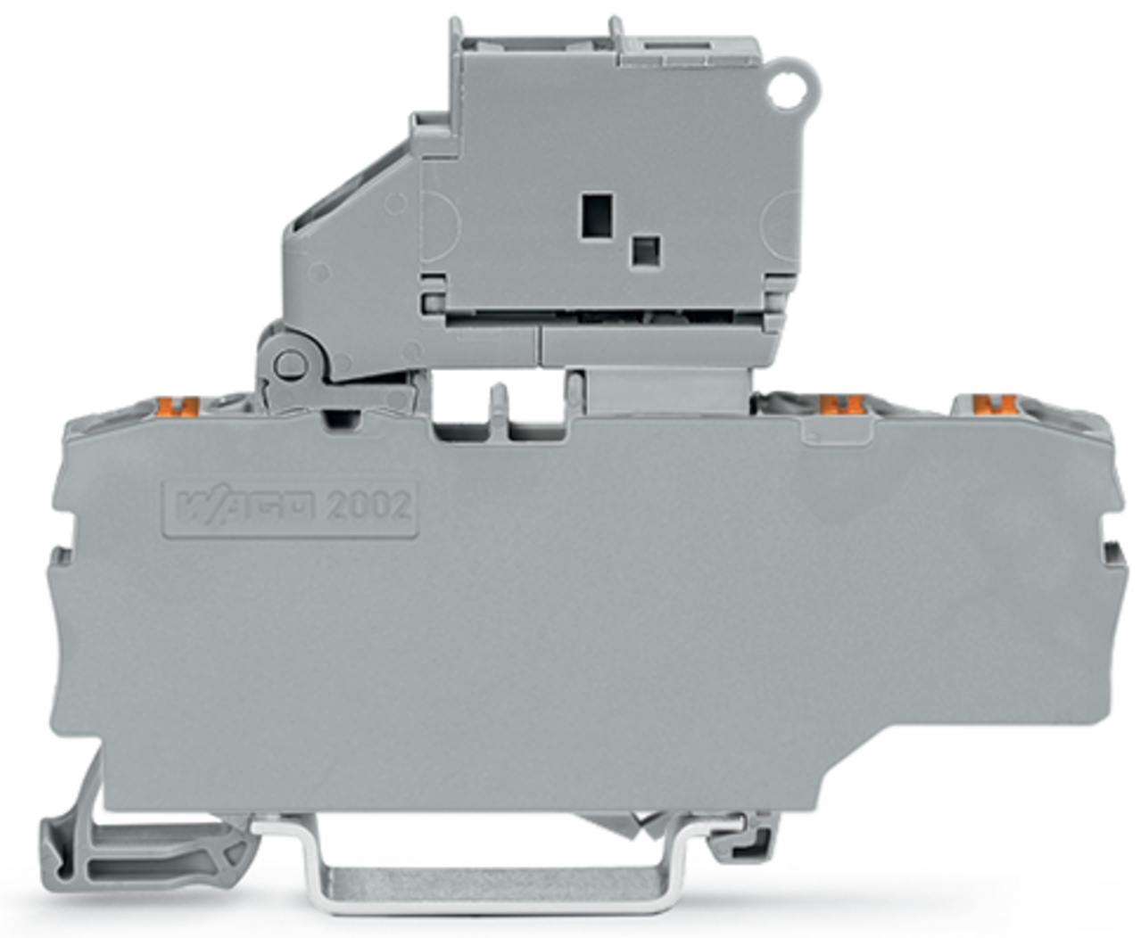 złączka bezpiecznikowa 3-przewodowa; z uchylną podstawką bezpiecznika; i ścianka końcowa; do wkładki bezpiecznikowej aparatowej 5 x 20 mm; z przyciskami; bez sygnalizacji przepalenia wkładki; na szynę TS 35 x 15 i 35 x 7,5; 2,5 mm²; Push-in CAGE CLAMP®; 2,50 mm²; szary