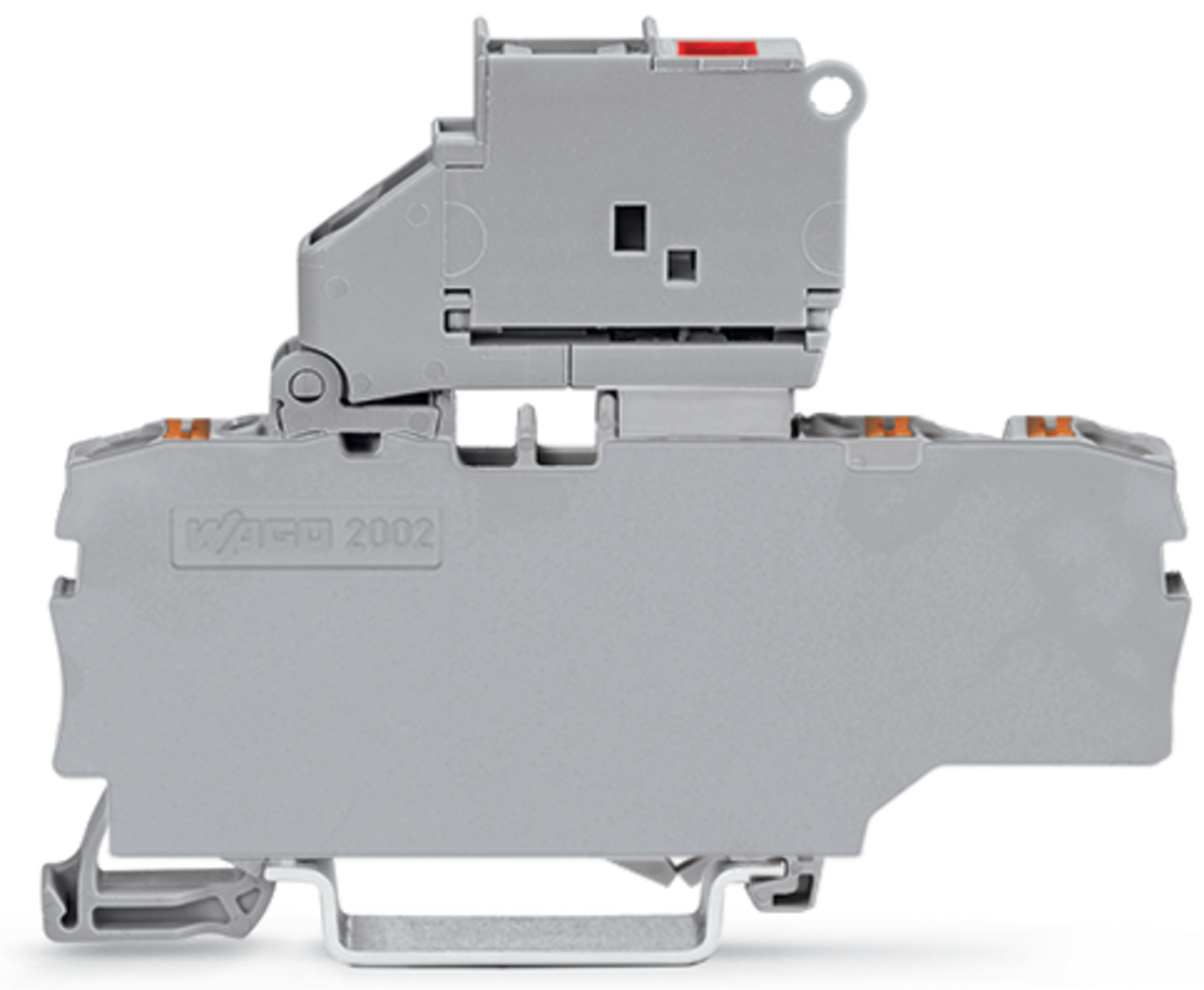 3-przewodowa złączka bezpiecznikowa z uchylną podstawką bezpiecznika ze ścianką końcową, szara 2202-1711/1000-867