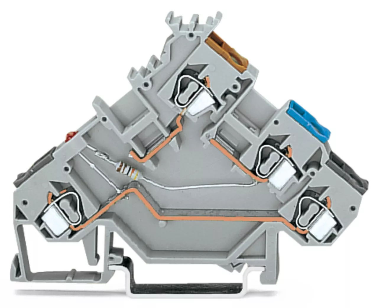 złączka sygnałowa 3-piętrowa; LED czerwona; typu PNP; z otworami na przew. z kolor. nadrukiem; 2,5 mm²; CAGE CLAMP®; 2,50 mm²; szary
