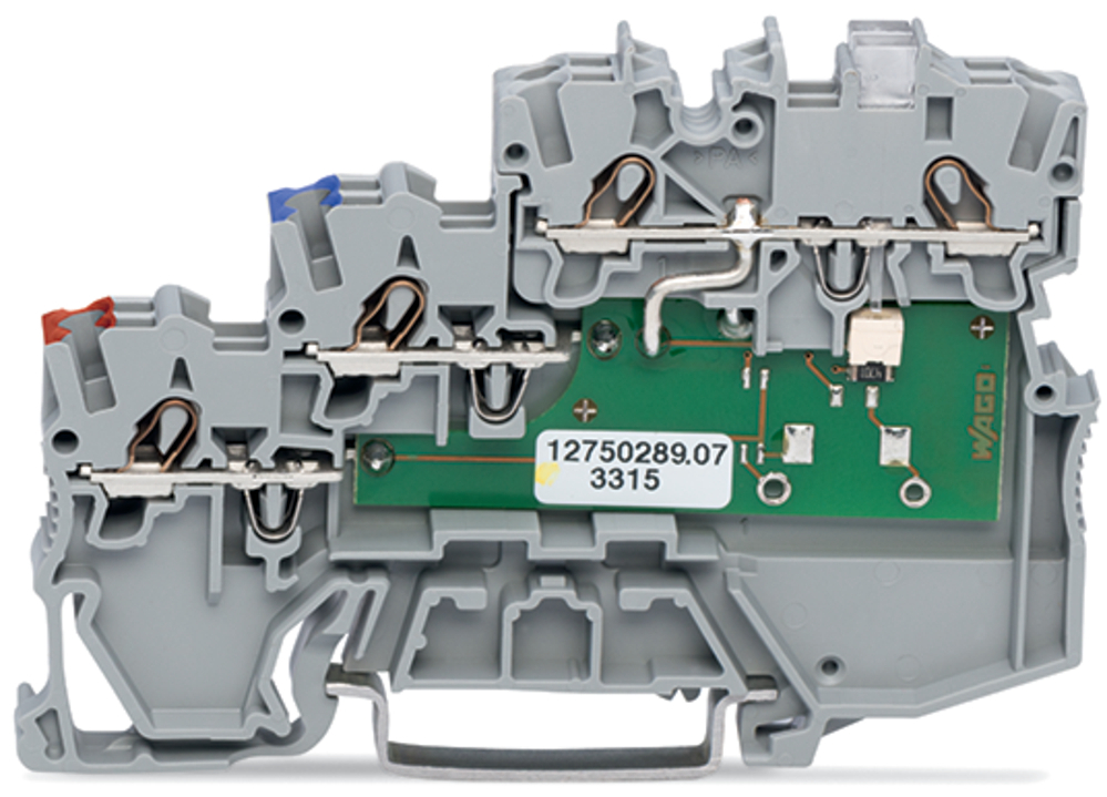 złączka sygnałowa 3-piętrowa; LED żółta; typu PNP; 1 mm²; Push-in CAGE CLAMP®; 1,00 mm²; szary
