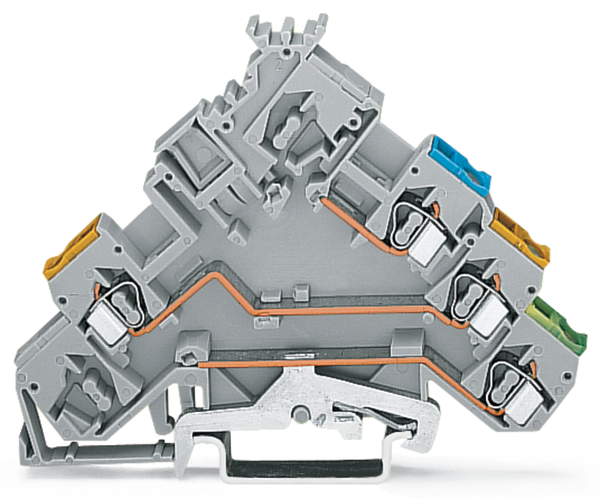 złączka sygnałowa 3-piętrowa; z przyłączem PE; z otworami na przew. z kolor. nadrukiem; 2,5 mm²; CAGE CLAMP®; 2,50 mm²; szary