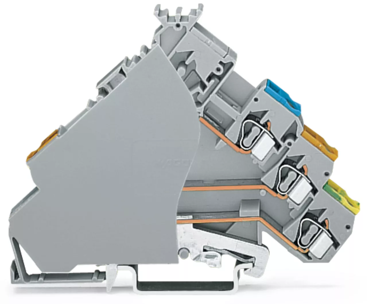 złączka sygnałowa 3-piętrowa; z przyłączem PE; z otworami na przew. z kolor. nadrukiem; 2,5 mm²; CAGE CLAMP®; 2,50 mm²; szary
