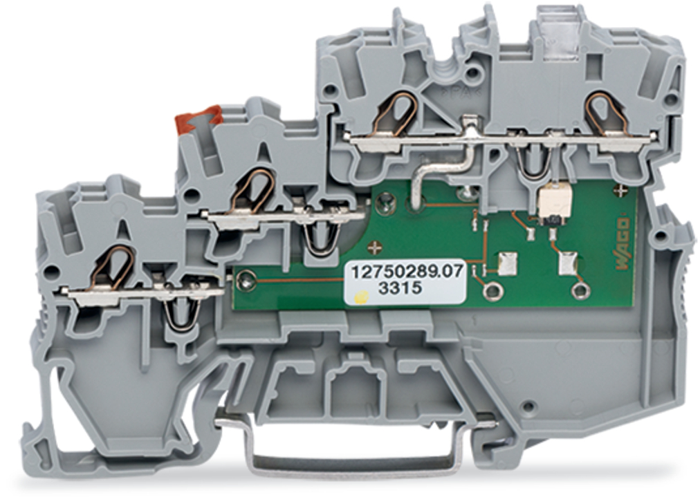złączka sygnałowa 3-piętrowa; LED żółta; typu NPN; z przyłączem PE, bez stopki PE; 1 mm²; Push-in CAGE CLAMP®; 1,00 mm²; szary