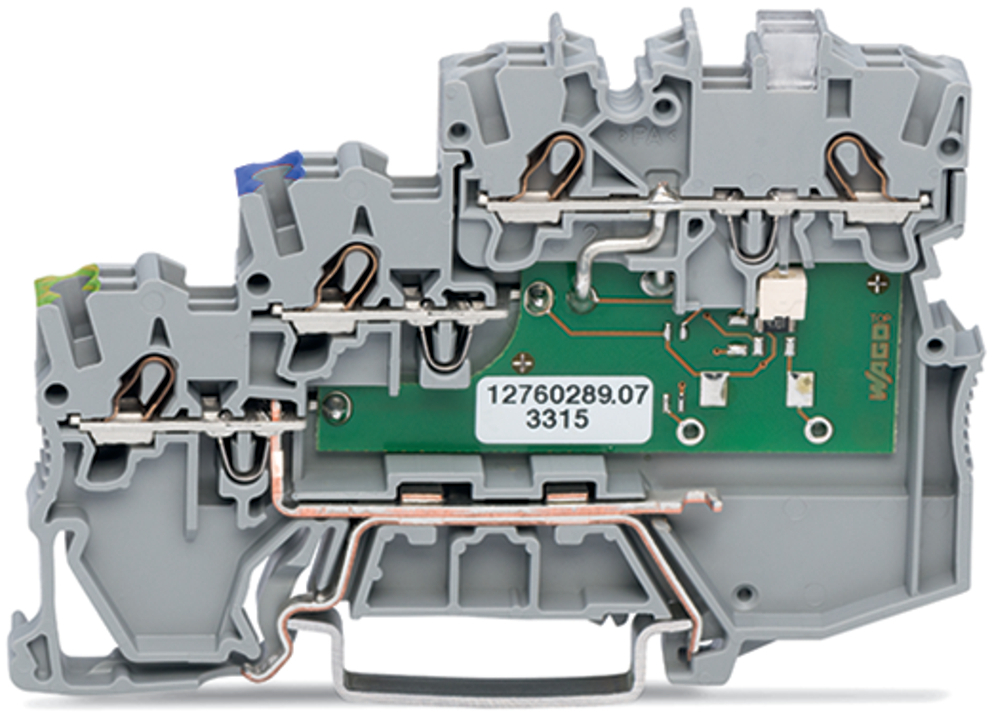 złączka sygnałowa 3-piętrowa; LED żółta; typu PNP; z przyłączem PE; 1 mm²; Push-in CAGE CLAMP®; 1,00 mm²; szary