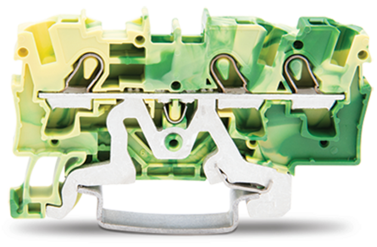 złączka PE 3-przewodowa; 4 mm²; do zastosowań Ex e II; opis z boku i na środku; na szynę TS 35 x 15 i 35 x 7,5; Push-in CAGE CLAMP®; 4,00 mm²; żółto-zielony