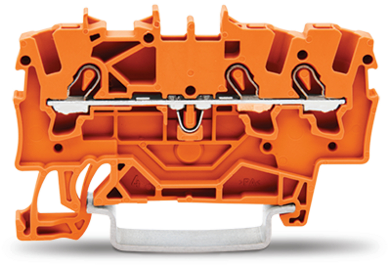 złączka przelotowa 3-przewodowa; 1,5 mm²; do zastosowań Ex e II; opis z boku i na środku; na szynę TS 35 x 15 i 35 x 7,5; Push-in CAGE CLAMP®; 1,50 mm²; pomarańczowy
