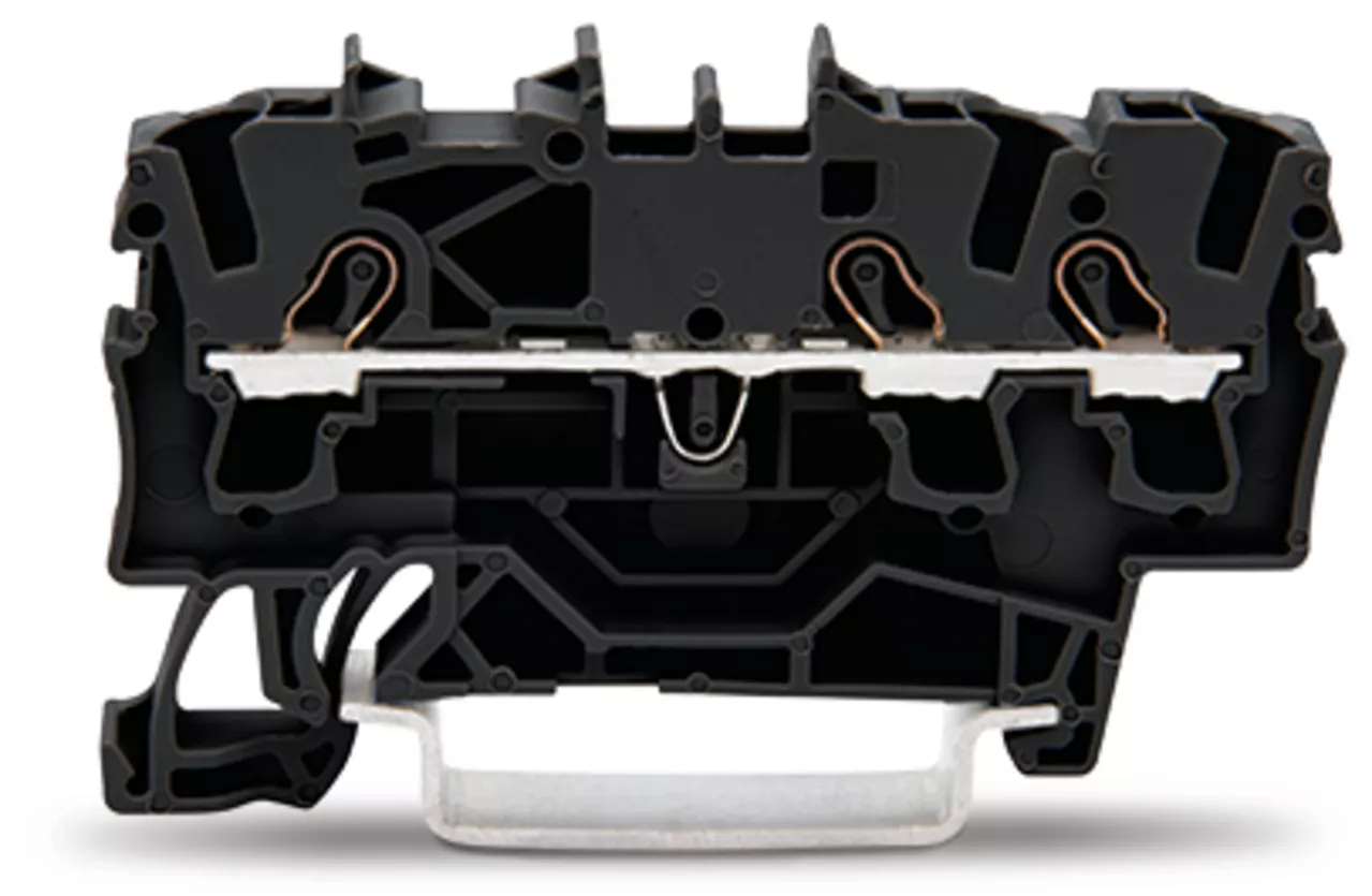 złączka przelotowa 3-przewodowa; 2,5 mm²; do zastosowań Ex e II; opis z boku i na środku; na szynę TS 35 x 15 i 35 x 7,5; Push-in CAGE CLAMP®; 2,50 mm²; czarny