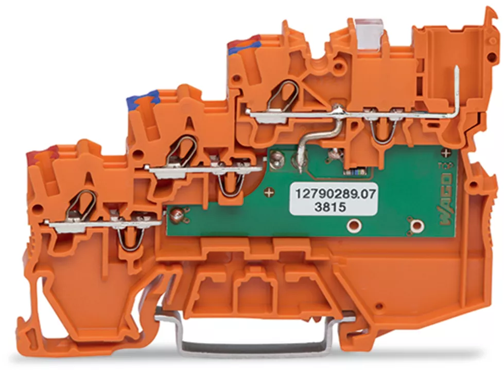 złączka zasilająca sygnałowa 3-piętrowa; LED zielona; z systemem wtykowym w torze sygnałowym; 1 mm²; Push-in CAGE CLAMP®; 1,00 mm²; pomarańczowy
