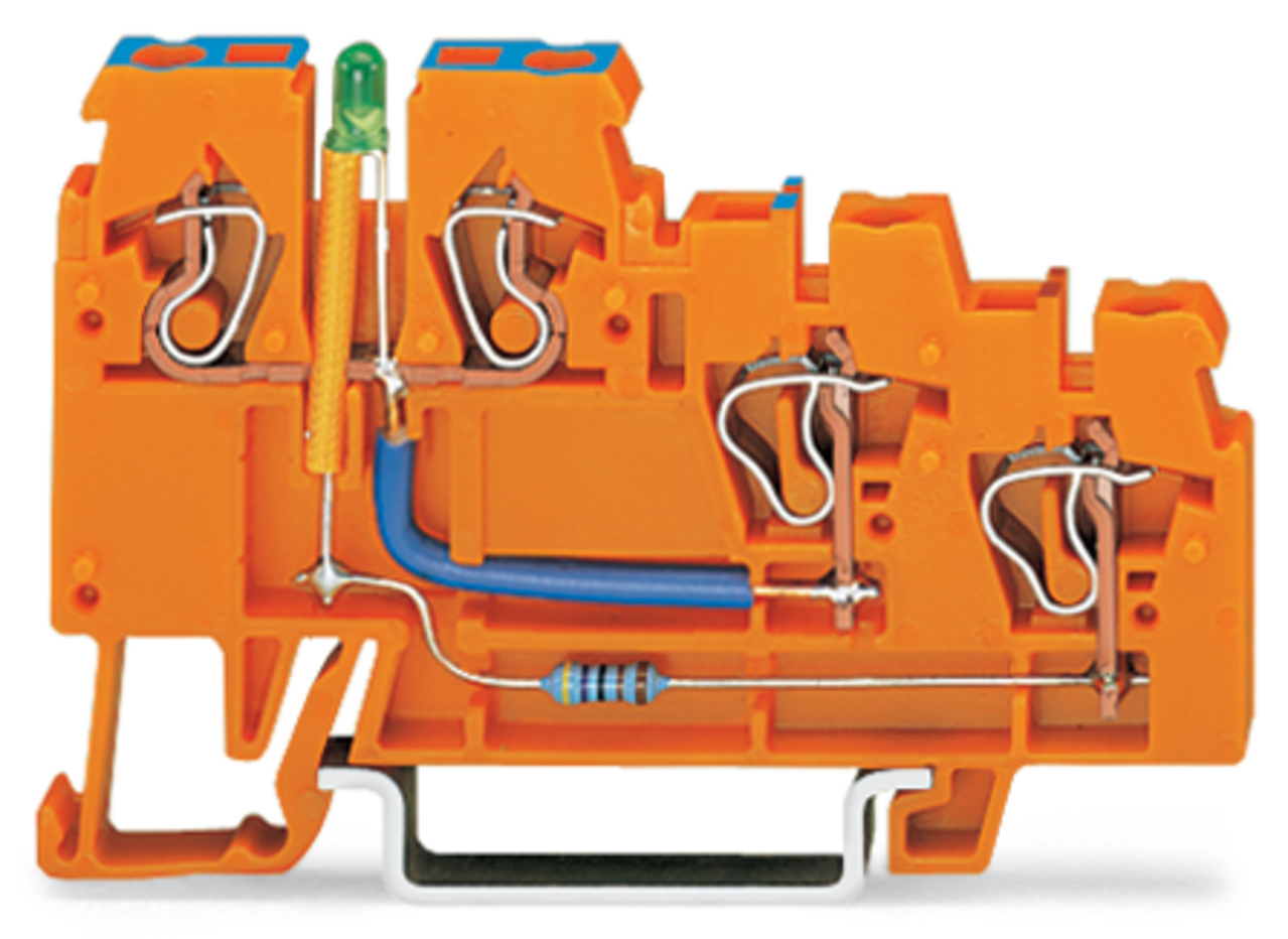 złączka zasilająca sygnałowa 3-piętrowa; LED zielona; 2,5 mm²; CAGE CLAMP®; 2,50 mm²; pomarańczowy