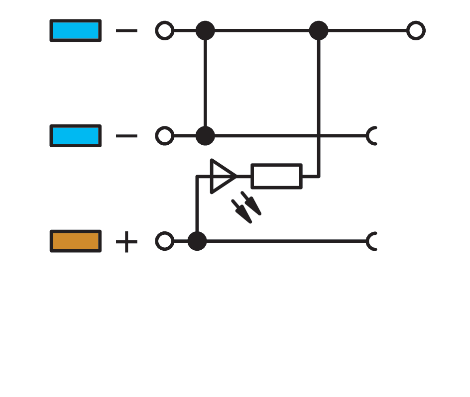 3-przewodowa złączka zasilająca do czujników LED zielona, pomarańczowa 270-564/281-483