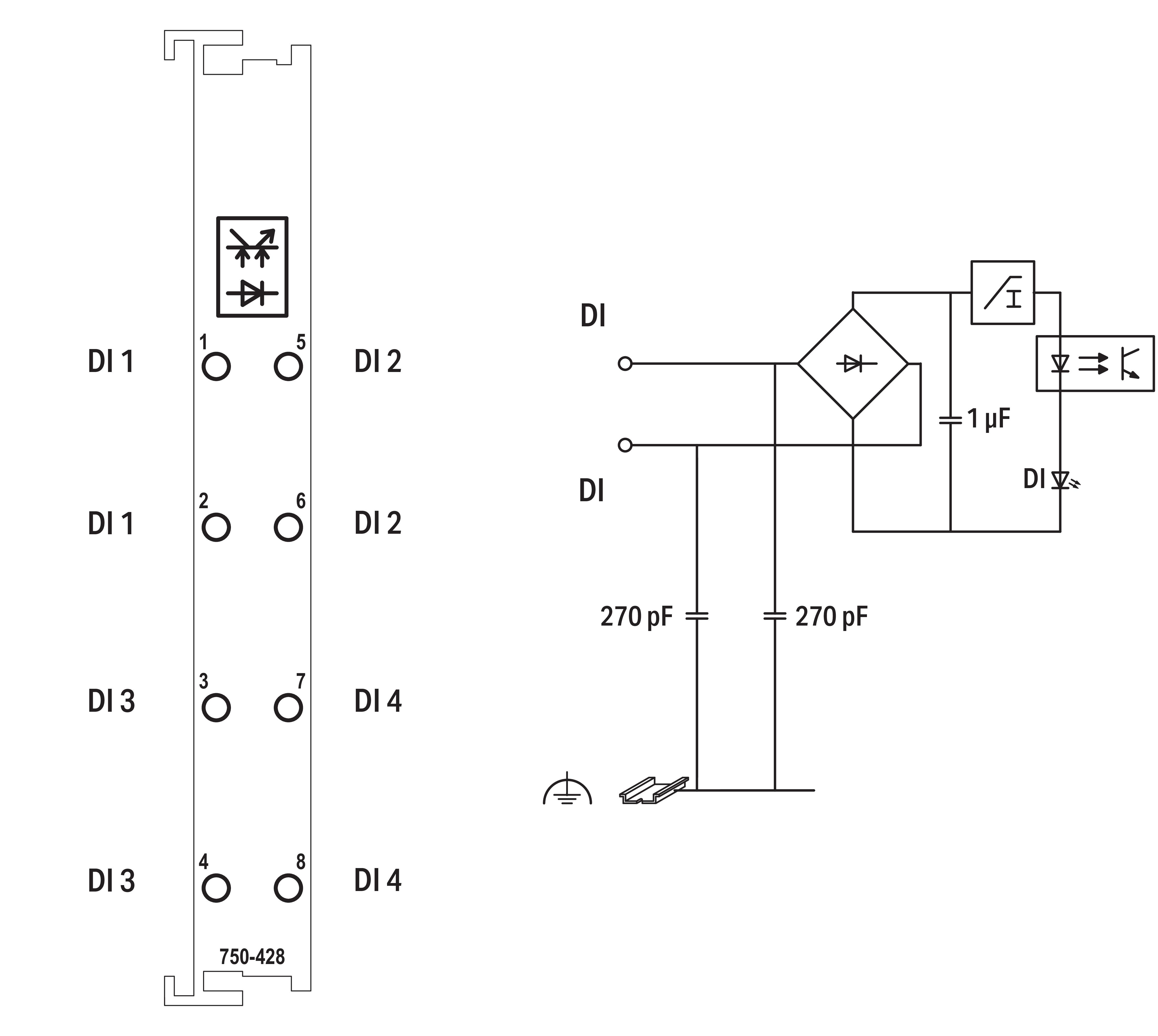 4-kanałowe wejście dwustanowe; 42 V AC/DC; 20 ms 750-428