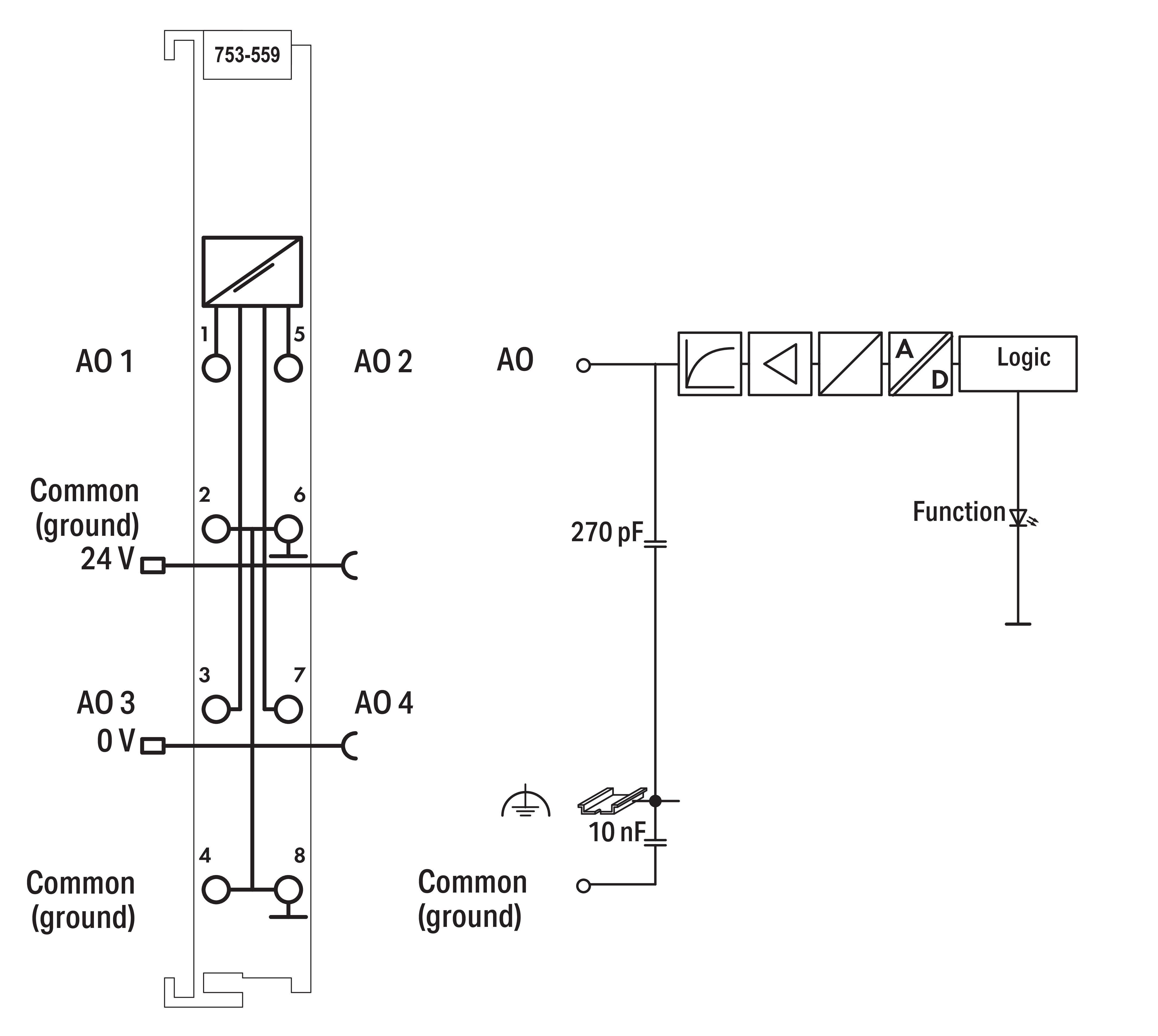 4-kanałowe wyjście analogowe 0-10 VDC, jasnoszara 753-559