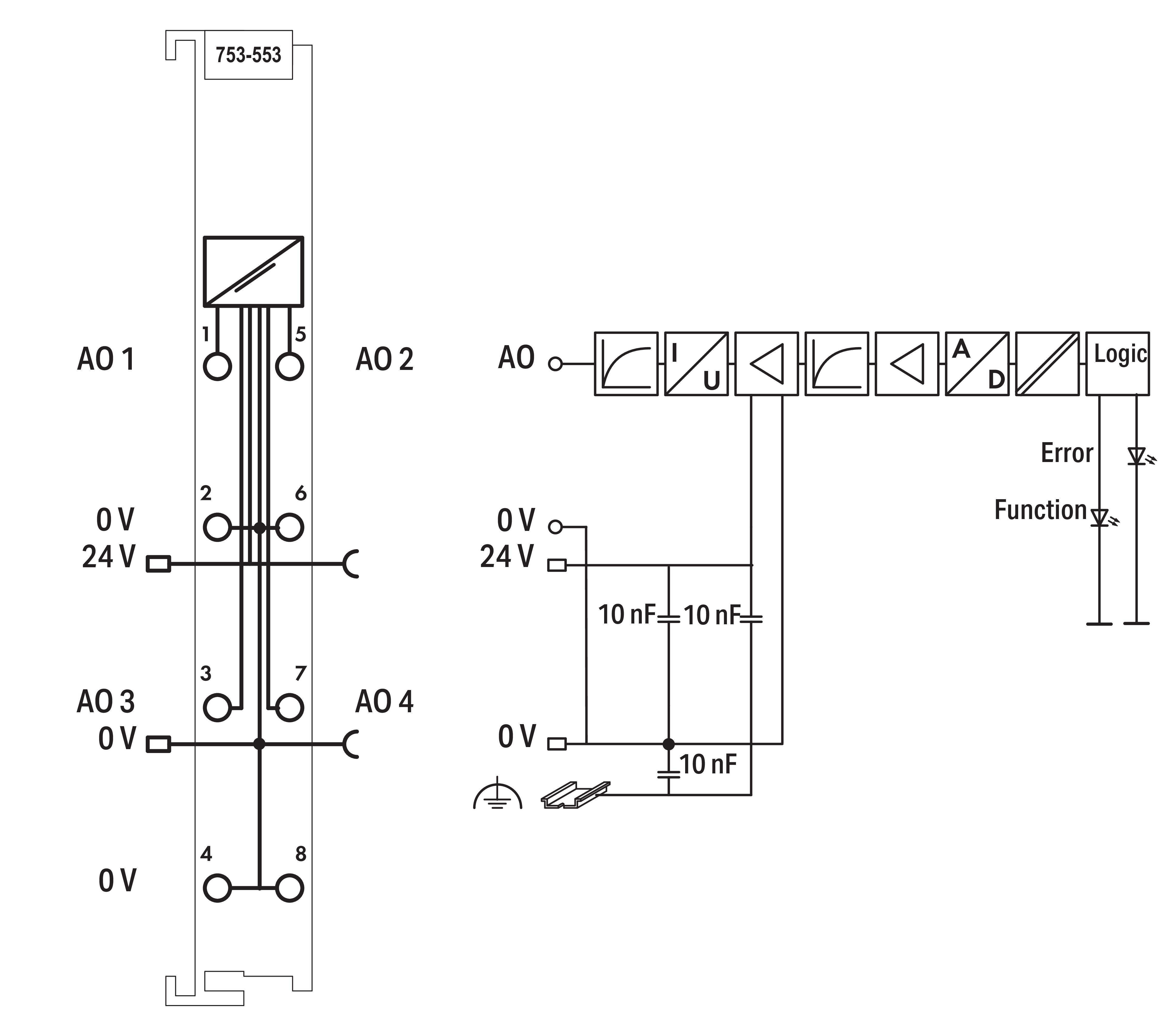 4-kanałowe wyjście analogowe 0-20mA, jasnoszara 753-553