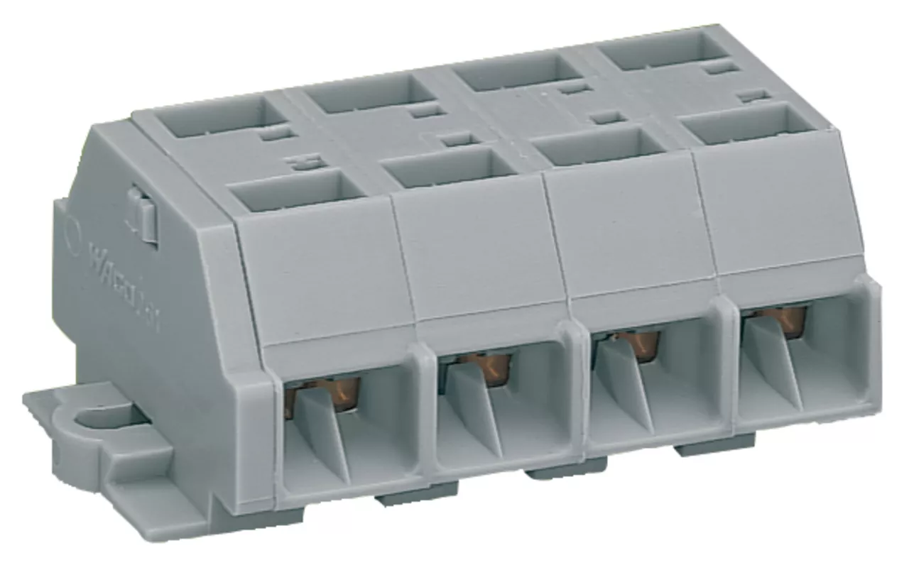 listwa zaciskowa 4-przewodowa; bez przycisków; z uchwytami montażowymi; 4-bieg.; do mocowania śrubowego i podobnego typu; otwór montażowy Ø 3,2 mm; 2,5 mm²; CAGE CLAMP®; szary