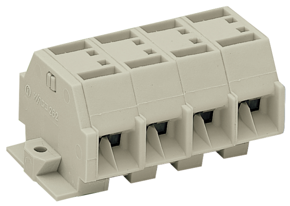 listwa zaciskowa 4-przewodowa; bez przycisków; do zastosowań Ex e II; z uchwytami montażowymi; 4-bieg.; do mocowania śrubowego i podobnego typu; otwór montażowy Ø 3,2 mm; 4 mm²; CAGE CLAMP®; 4,00 mm²; jasnoszary
