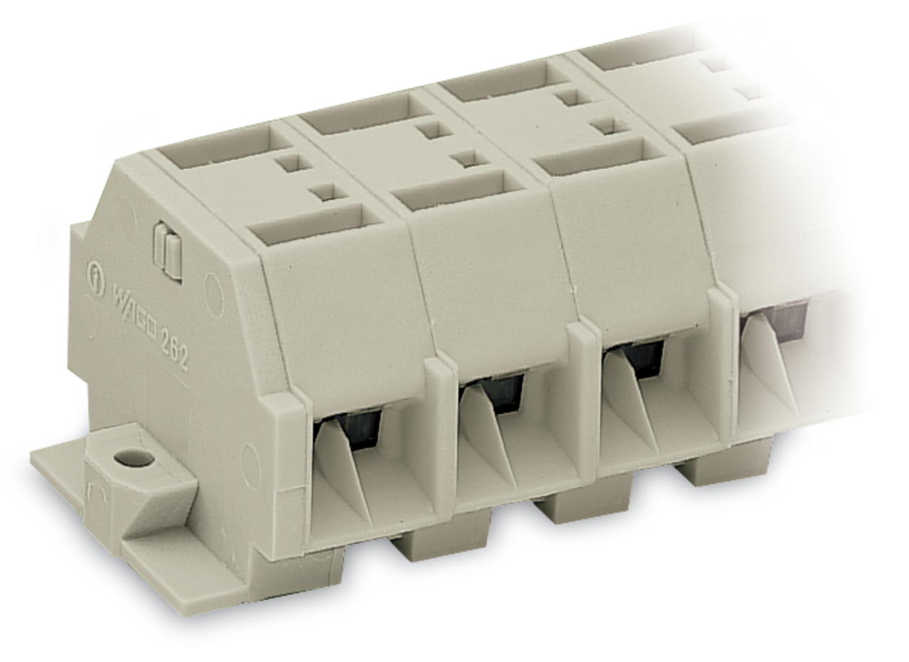 listwa zaciskowa 4-przewodowa; bez przycisków; do zastosowań Ex e II; z uchwytami montażowymi; 6-bieg.; do mocowania śrubowego i podobnego typu; otwór montażowy Ø 3,2 mm; 4 mm²; CAGE CLAMP®; 4,00 mm²; jasnoszary