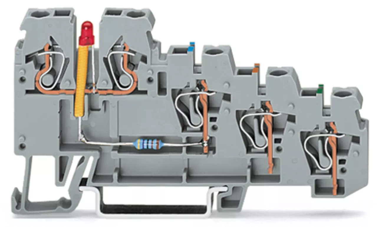 złączka sygnałowa 4-piętrowa; LED czerwona; typu PNP; 2,5 mm²; CAGE CLAMP®; 2,50 mm²; szary