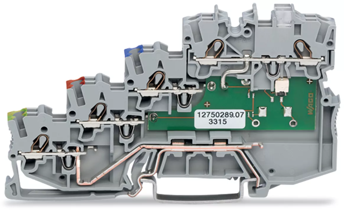 złączka sygnałowa 4-piętrowa; LED żółta; typu NPN; z przyłączem PE; 1 mm²; Push-in CAGE CLAMP®; 1,00 mm²; szary