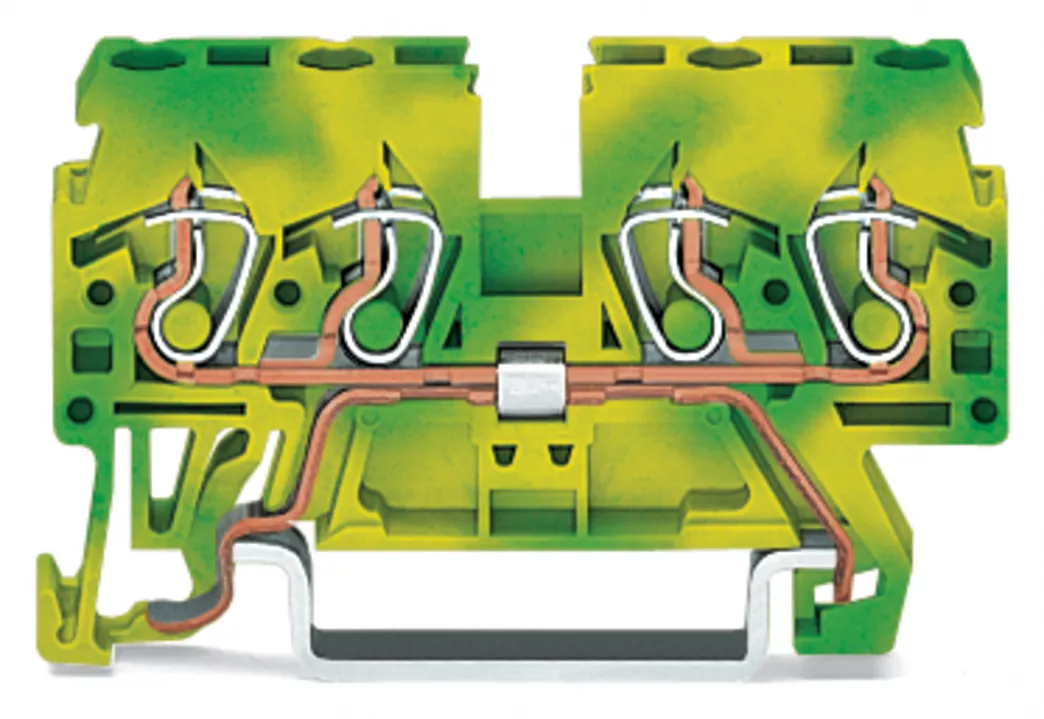 złączka PE 4-przewodowa; 2,5 mm²; boczne miejsca na oznaczniki; na szynę TS 35 x 15 i 35 x 7,5; CAGE CLAMP®; 2,50 mm²; żółto-zielony