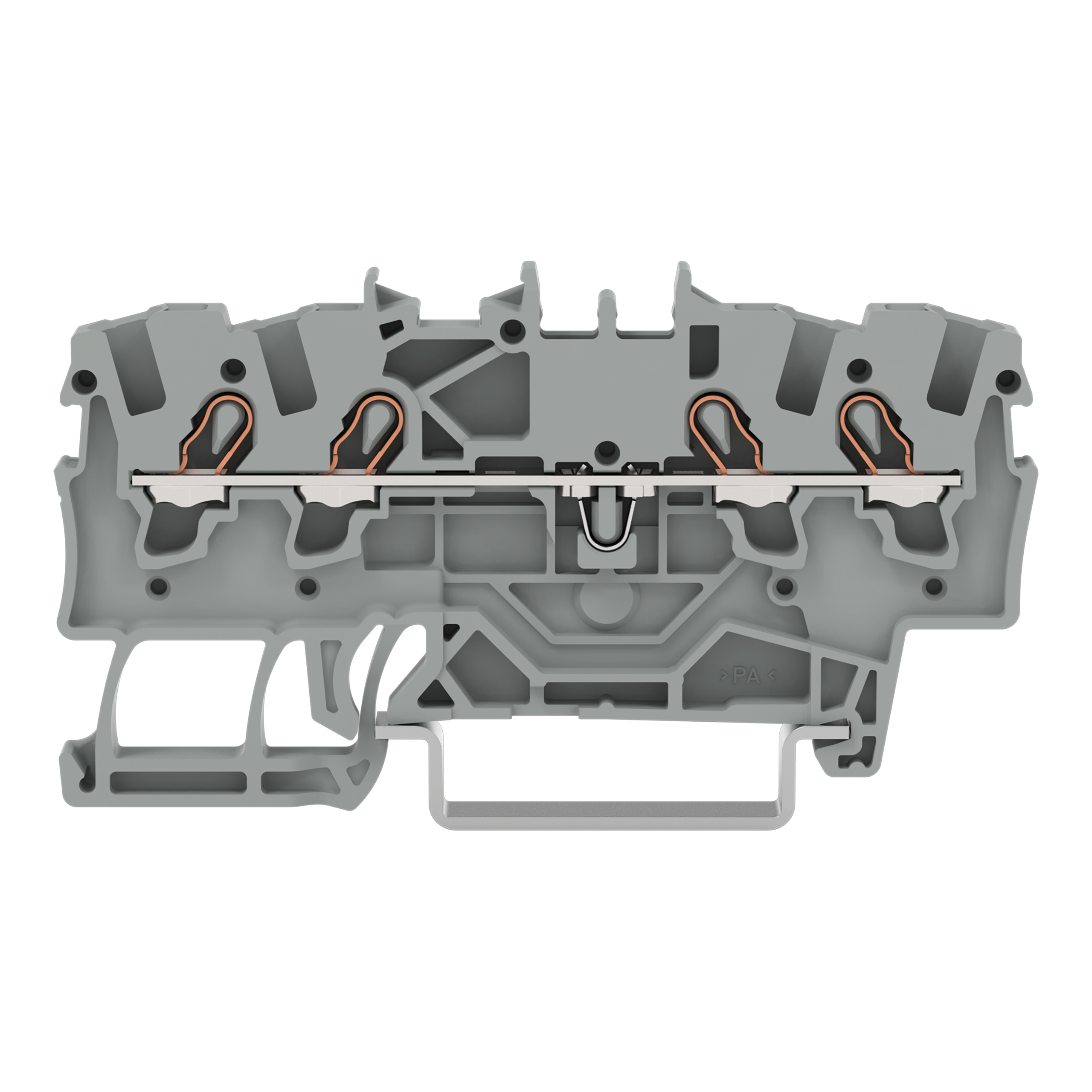 złączka przelotowa 4-przewodowa; 1,5 mm²; do zastosowań Ex e II; opis z boku i na środku; na szynę TS 35 x 15 i 35 x 7,5; Push-in CAGE CLAMP®; 1,50 mm²; szary