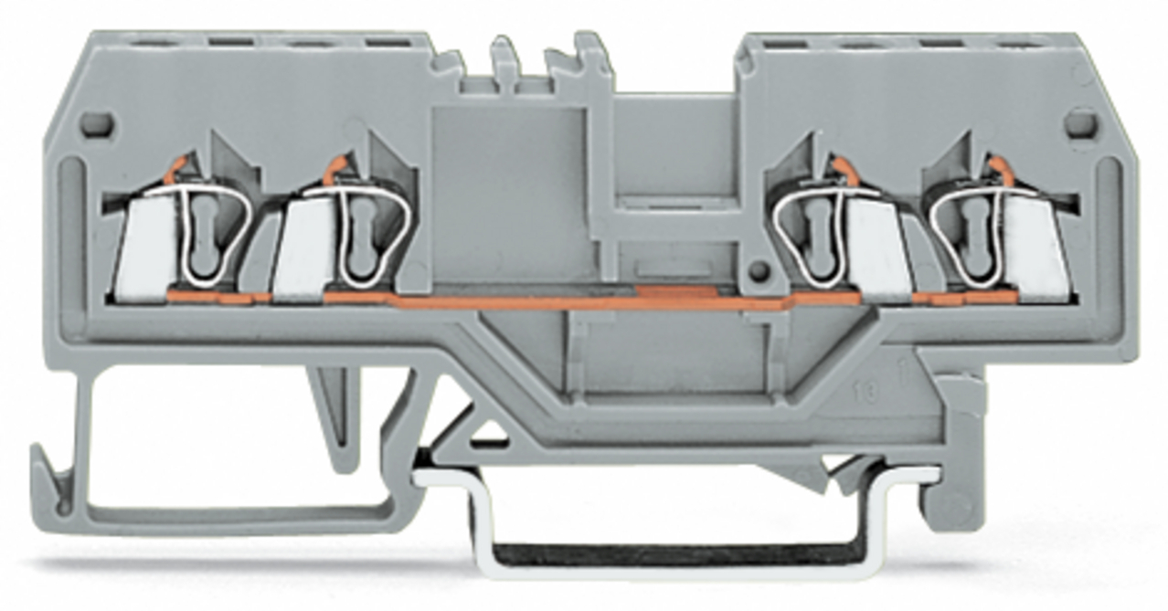 złączka przelotowa 4-przewodowa; 1,5 mm²; opis na środku; na szynę TS 35 x 15 i 35 x 7,5; CAGE CLAMP®; 1,50 mm²; szary
