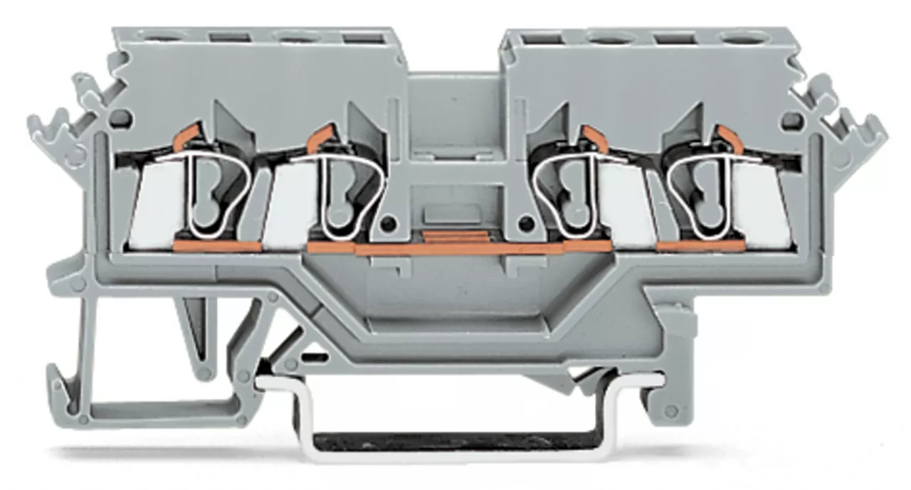 złączka przelotowa 4-przewodowa; 2,5 mm²; do zastosowań Ex e II; boczne miejsca na oznaczniki; na szynę TS 35 x 15 i 35 x 7,5; CAGE CLAMP®; 2,50 mm²; jasnoszary