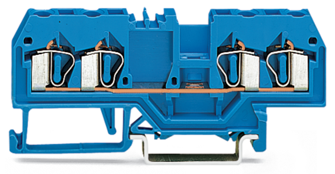 złączka przelotowa 4-przewodowa; 2,5 mm²; do zastosowań Ex i; opis na środku; na szynę TS 35 x 15 i 35 x 7,5; CAGE CLAMP®; 2,50 mm²; niebieski