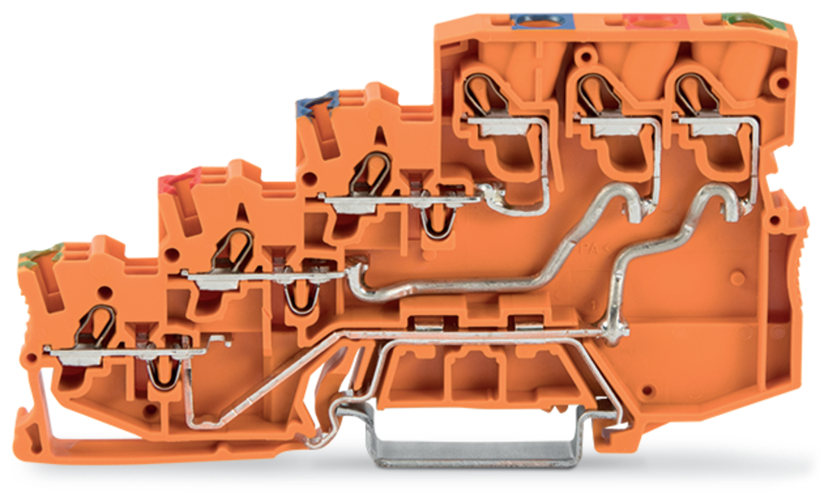 złączka zasilająca sygnałowa 4-piętrowa; z przyłączem PE; z otworami na przew. z kolor. nadrukiem; 2,5 mm²; Push-in CAGE CLAMP®; 2,50 mm²; pomarańczowy