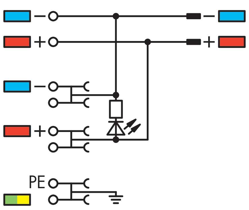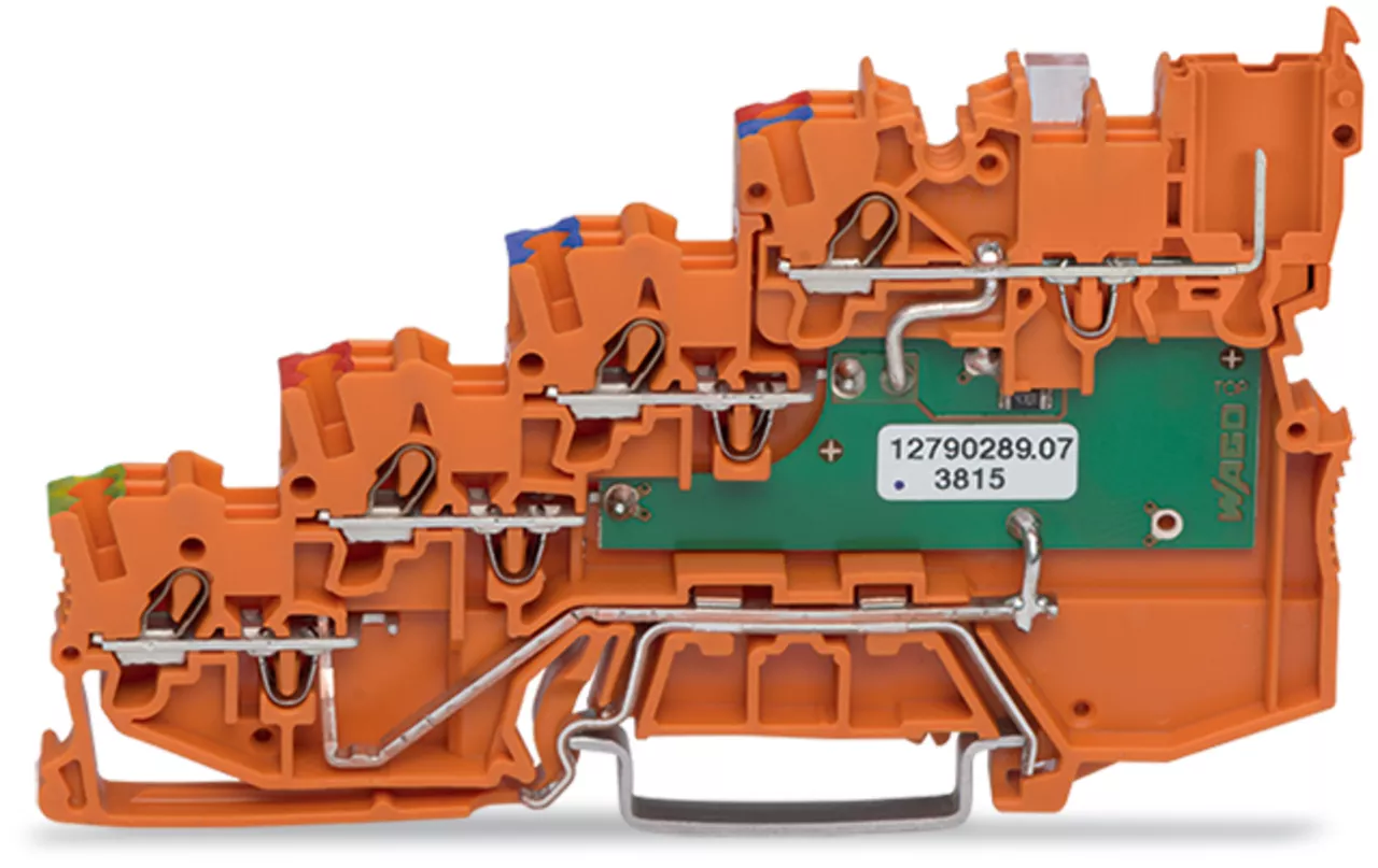 złączka zasilająca sygnałowa 4-piętrowa; LED zielona; z przyłączem PE; z systemem wtykowym w torze sygnałowym; 1 mm²; Push-in CAGE CLAMP®; 1,00 mm²; pomarańczowy