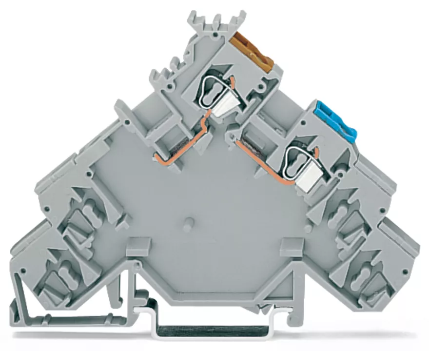 złączka zasilająca sygnałowa 4-piętrowa; z otworami na przew. z kolor. nadrukiem; 2,5 mm²; CAGE CLAMP®; 2,50 mm²; szary