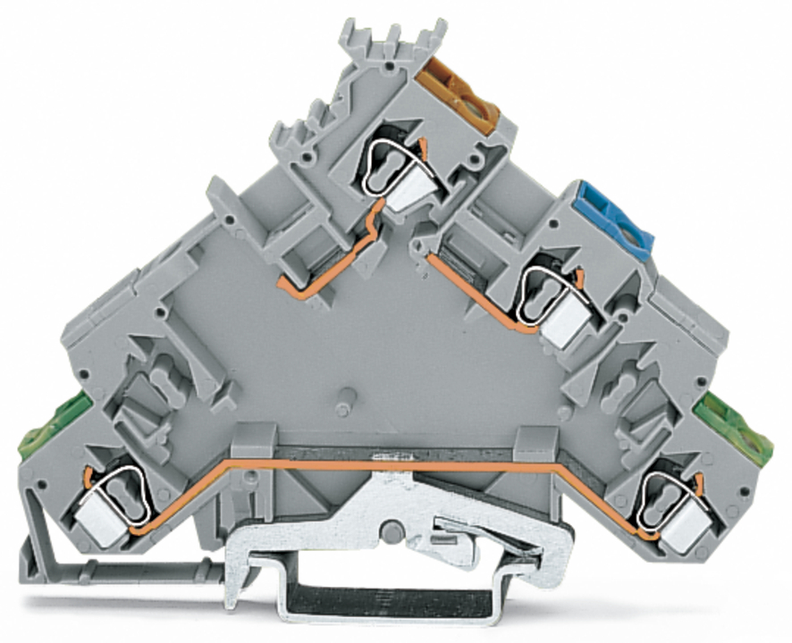 złączka zasilająca sygnałowa 4-piętrowa; z przyłączem PE; z otworami na przew. z kolor. nadrukiem; 2,5 mm²; CAGE CLAMP®; 2,50 mm²; szary