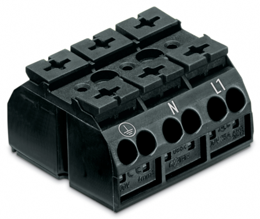 blok zasilający 4-przewodowy; do zastosowań Ex e II; bez styku PE; PE-N-L1; 3-bieg.; do śruby i nakrętki M3; 4 mm²; 4,00 mm²; czarny