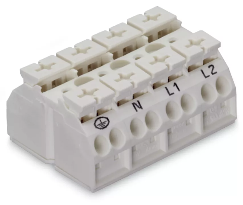 blok zasilający 4-przewodowy; do zastosowań Ex e II; bez styku PE; PE-N-L1-L2; 4-bieg.; do śruby i nakrętki M3; 4 mm²; 4,00 mm²; biały