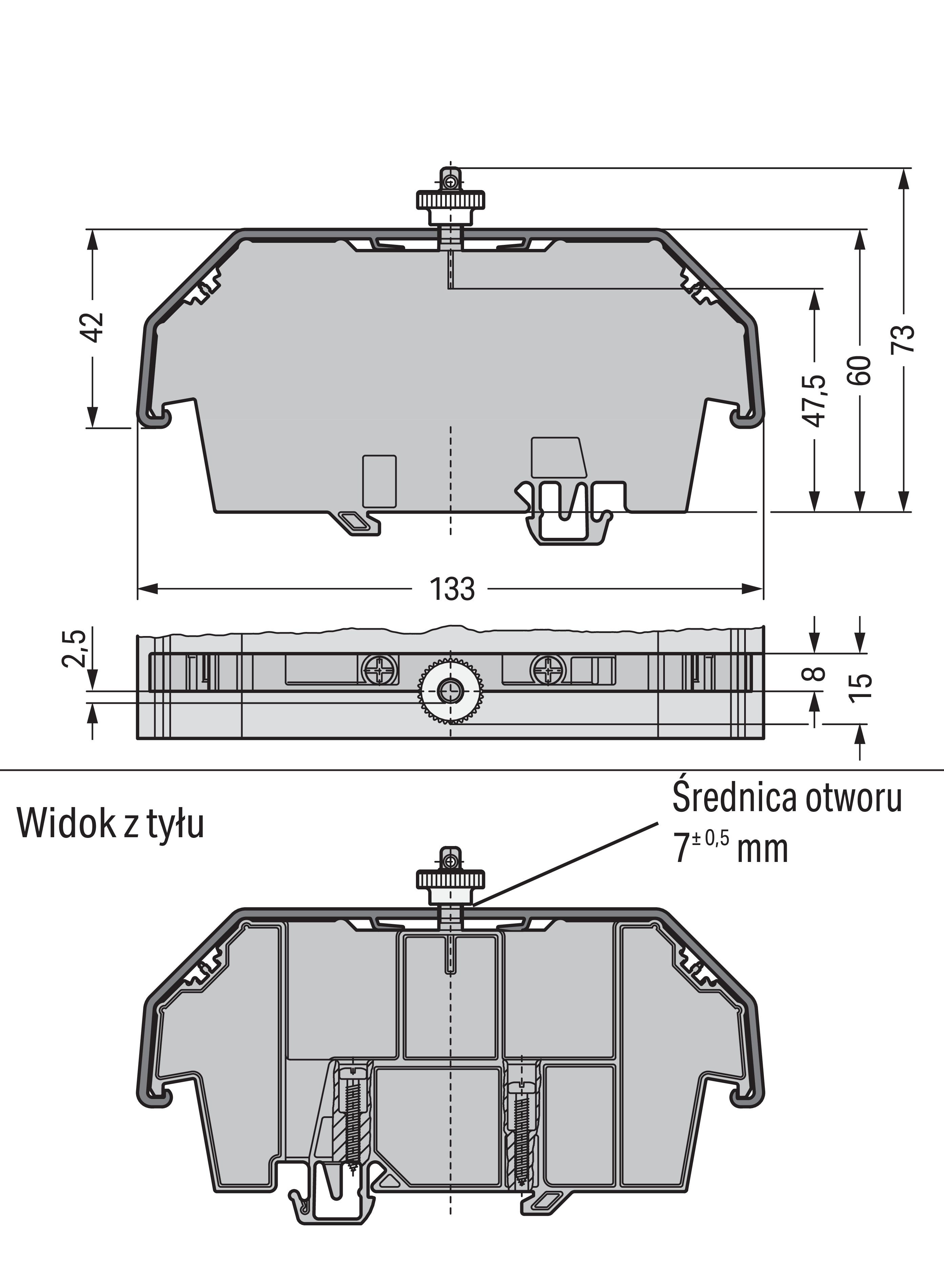 wspornik pokrywy; typ 1; z wkrętem mocującym, stabilizującym i nakrętkami; do złączek listwowych z serii od 279 do 282, 880; do złączek listwowych Mini z serii 264; do złączek sygnałowych z serii 270; szary