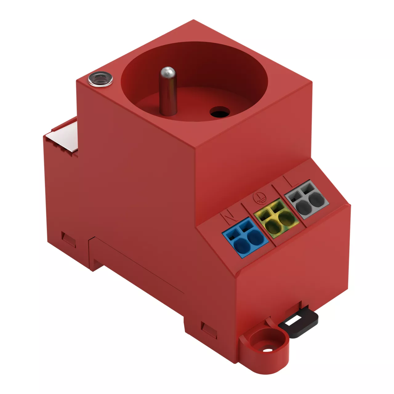 gniazdo instalacyjne do szaf sterowniczych; do montażu na szynie i montażu śrubowego; do wtyku typ E, CEE 7/5; standardowo w FR, BE, PL; z sygnalizacją statusu przez LED; z podwójnym zacisk. Push-in CAGE CLAMP®; czerwony