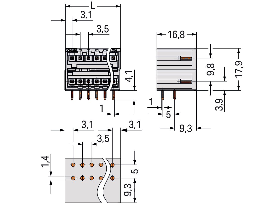 wtyk THT 2-piętrowy; pin lutowniczy 1,0 x 1,0 mm; konstrukcja kątowa; 100% ochrona przed błędnym połączeniem; raster 3,5 mm; 32-bieg.; jasnoszary