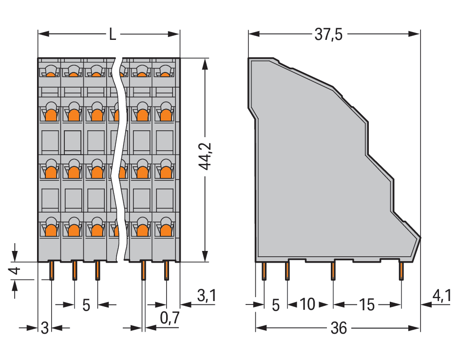 złącze 4-piętrowe do PCB; 2,5 mm²; raster 5 mm; 104-bieg.; CAGE CLAMP®; szary