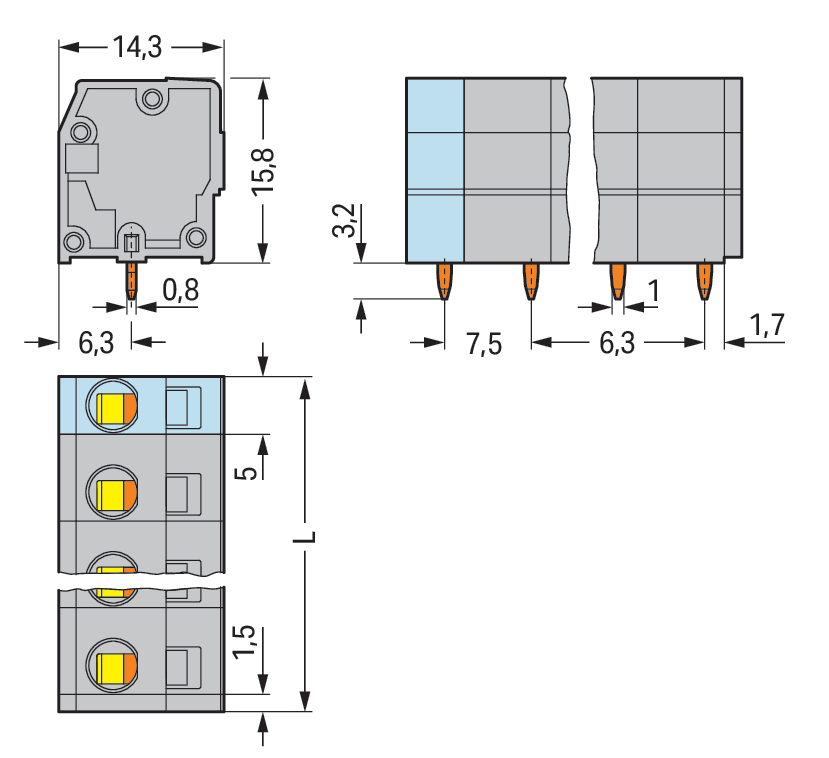 Złączka do płytek drukowanych 2,5 mm² RM 7,5 mm 7-bieg, szara