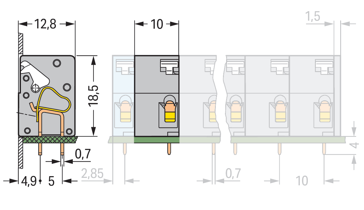 Modularna złączka do płytek drukowanych przycisk 2,5 mm² RM 10 mm 1-bieg, szara
