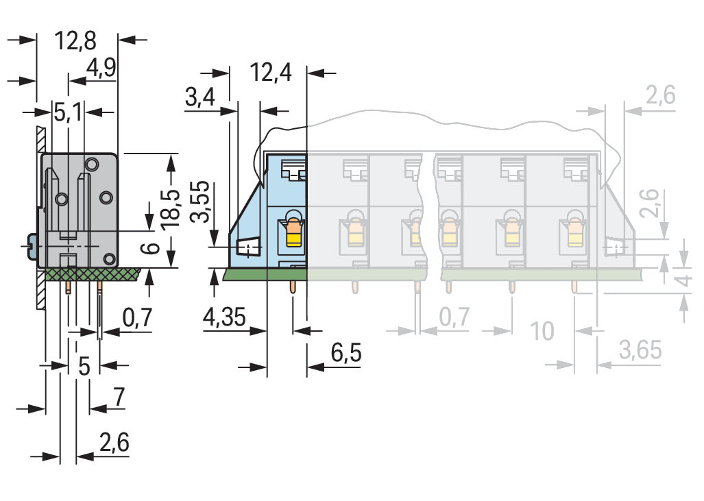 Modularna złączka do płytek drukowanych przycisk 2,5 mm² raster 6,5 mm 1-bieg, szara