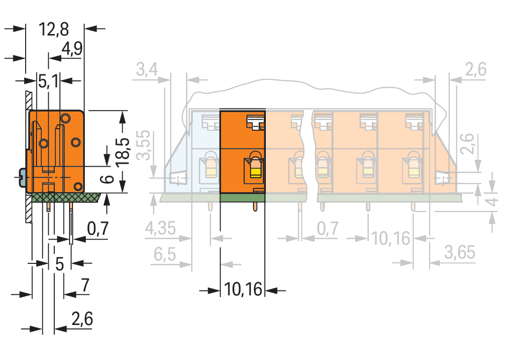 Modularna złączka do płytek drukowanych przycisk 2,5 mm² RM 10,16 mm 1-bieg, pomarańczowa