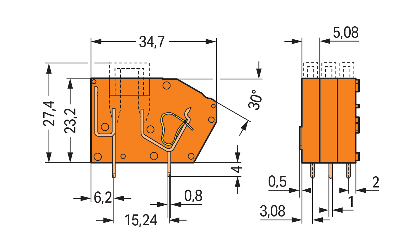 | Kąt płyta drukowana / przewód: |
