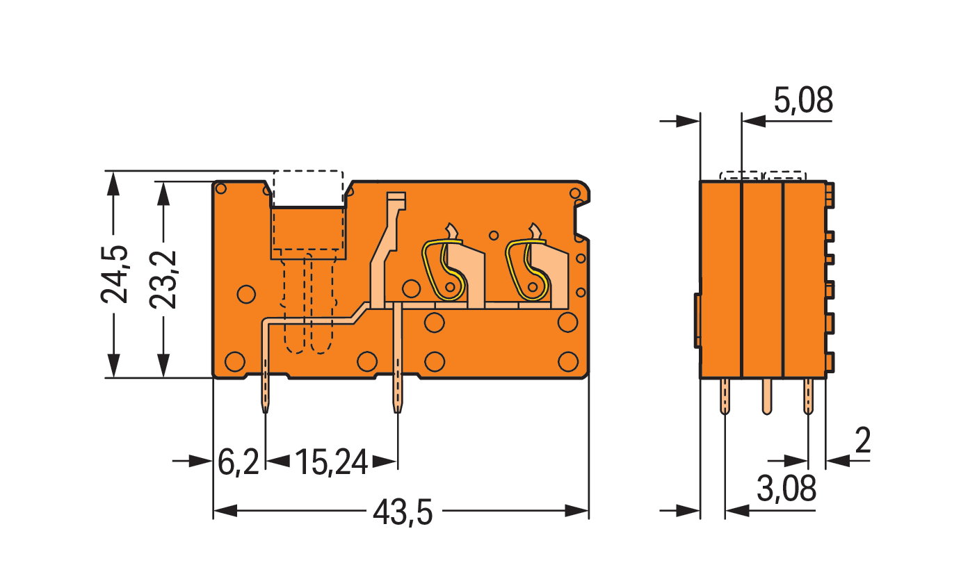 2-przew modul zł do płytek druk z możliwością mostkowania 2,5 mm² RM 5,08 mm, pomarańczowa