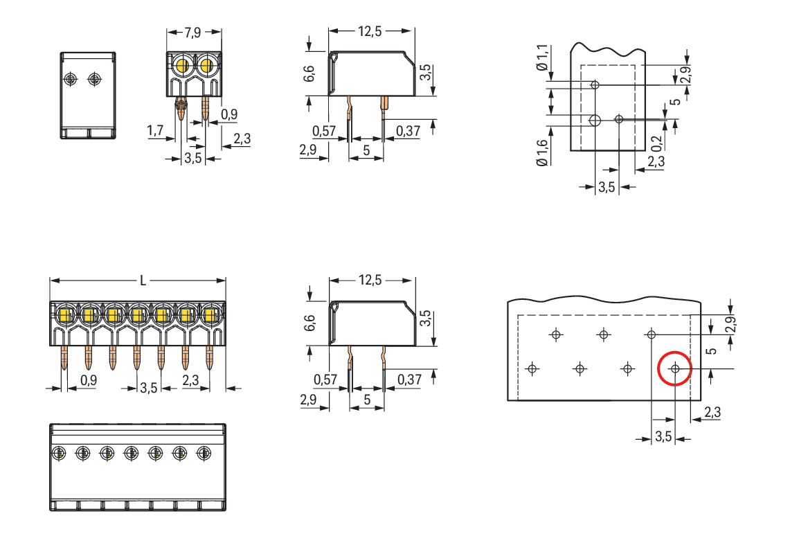 | Kąt płyta drukowana / przewód: |