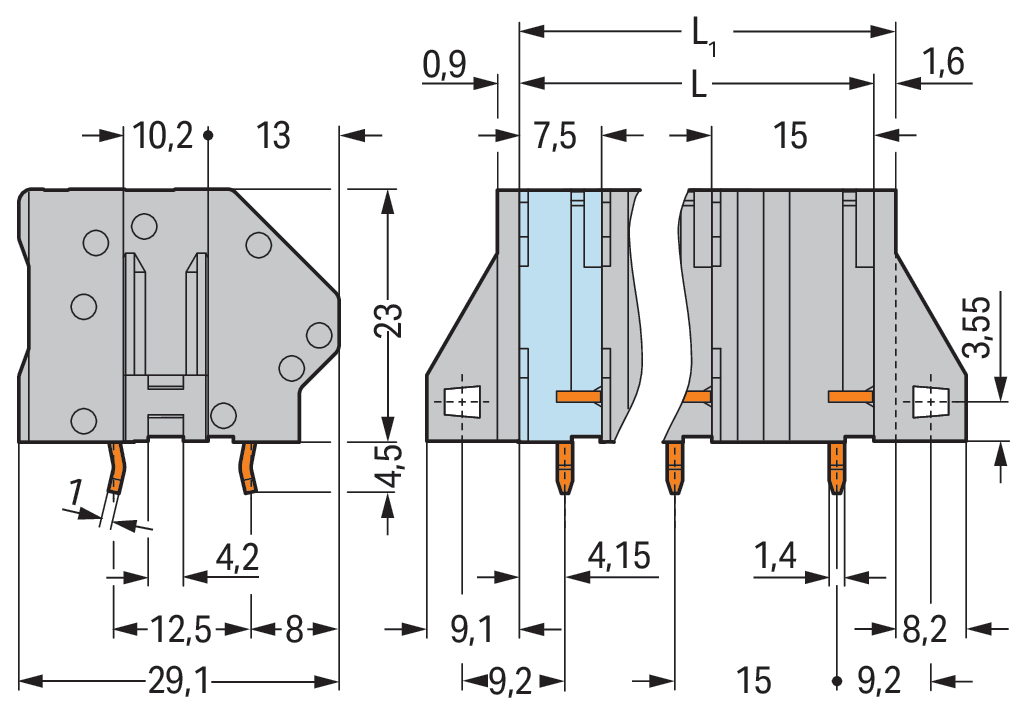Złączka do płytek drukowanych 6 mm² raster 15mm 3-bieg, szara